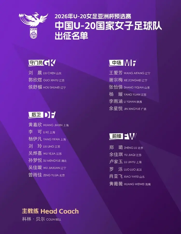 去年10月,英格兰人科林·贝尔正式出任中国U20女足主教练,这是他职业履历首次拿起青年国家队教鞭。此前,科林-贝尔曾执掌过韩国女足,德国法兰克福女足等队。带队韩国的经历,让他对亚洲足球相对了解。而值得一提的是,2022年女足亚洲杯决赛中国女足3-2战胜韩国捧杯,时任韩国女足主帅正是科林·贝尔。